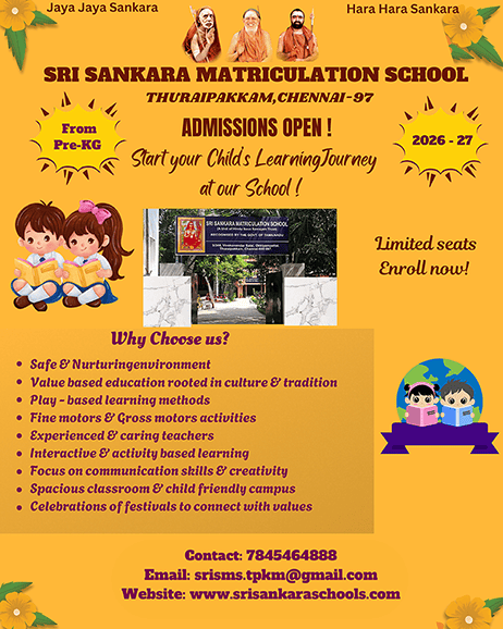 Sri Sankara Matriculation School, established on June 11, 2001, by the esteemed late Mr. Ramakrishnan under the divine blessings of His Holiness Sri Kanchi Kamakoti Peedhaadhipathi Sri Jayendra Saraswathi Swamigal and His Holiness the Sage of Kanchi, Maha Swamigal, stands as a pillar of educational excellence in Thuraipakkam. The school caters to students from Pre-KG through Class 10, diligently following the Tamil Nadu State Curriculum.